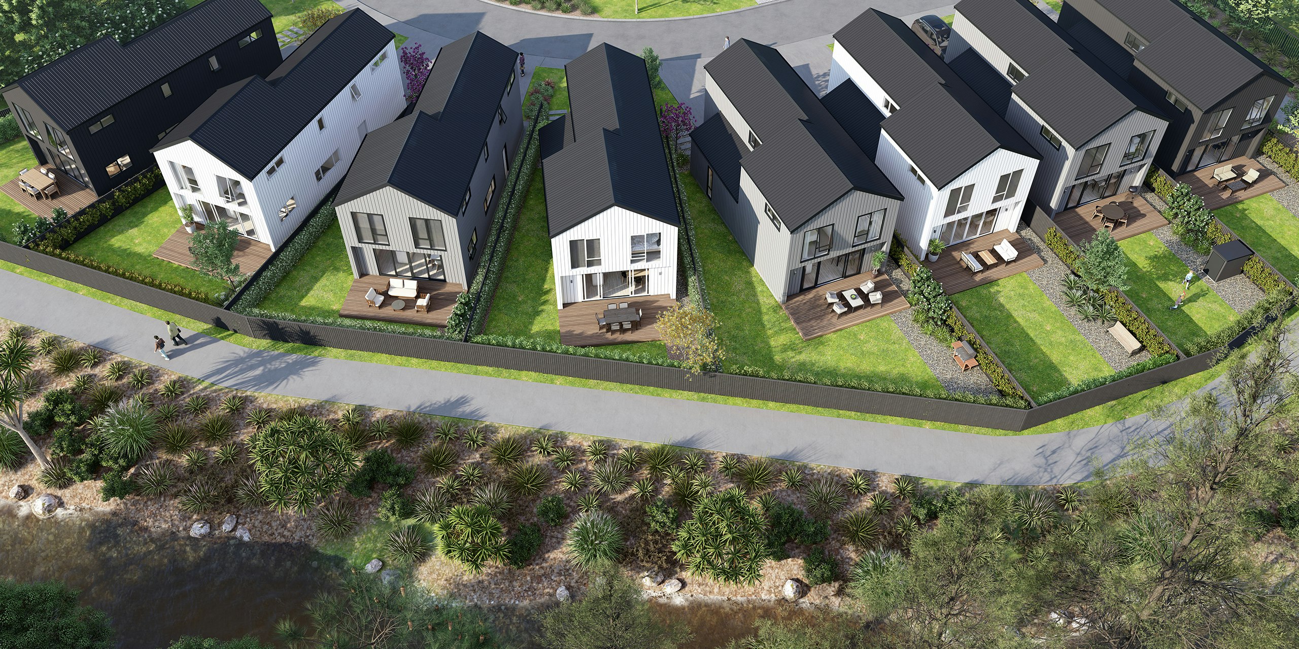 Lot 5 features a large premium yard and outlook with 228sqm of land. Inside you'll find three bedrooms plus a study on the upper floor with a well-appointed bathroom and separate toilet. On the lower level, the open-plan living area seamlessly extends to a deck and low-maintenance garden with exceptional views and access to the laneway that runs along the tree-lined stream. Walk out of your back gate and stroll down to the town centre, local amenities shops and parks.