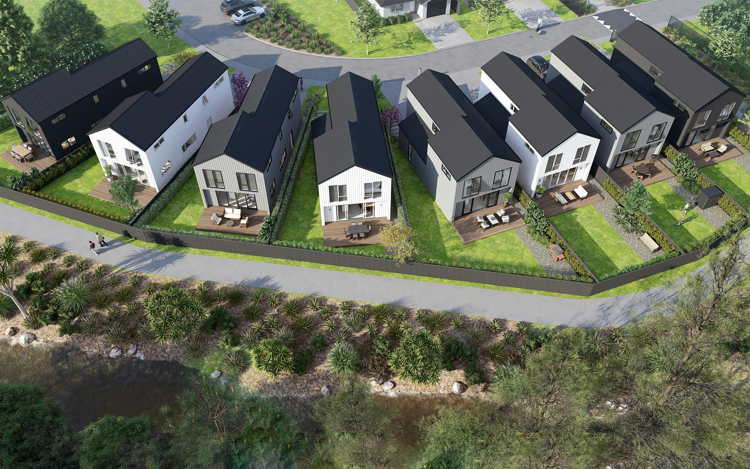 Lot 5 features a large premium yard and outlook with 228sqm of land. Inside you'll find three bedrooms plus a study on the upper floor with a well-appointed bathroom and separate toilet. On the lower level, the open-plan living area seamlessly extends to a deck and low-maintenance garden with exceptional views and access to the laneway that runs along the tree-lined stream. Walk out of your back gate and stroll down to the town centre, local amenities shops and parks.
