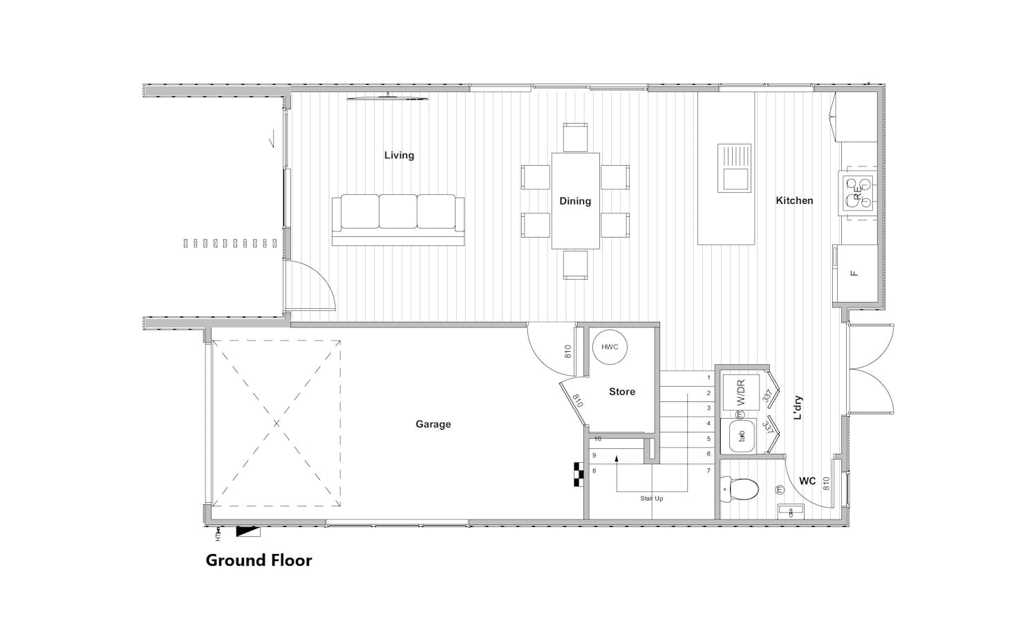 - Open plan Kitchen, Dining, Living
