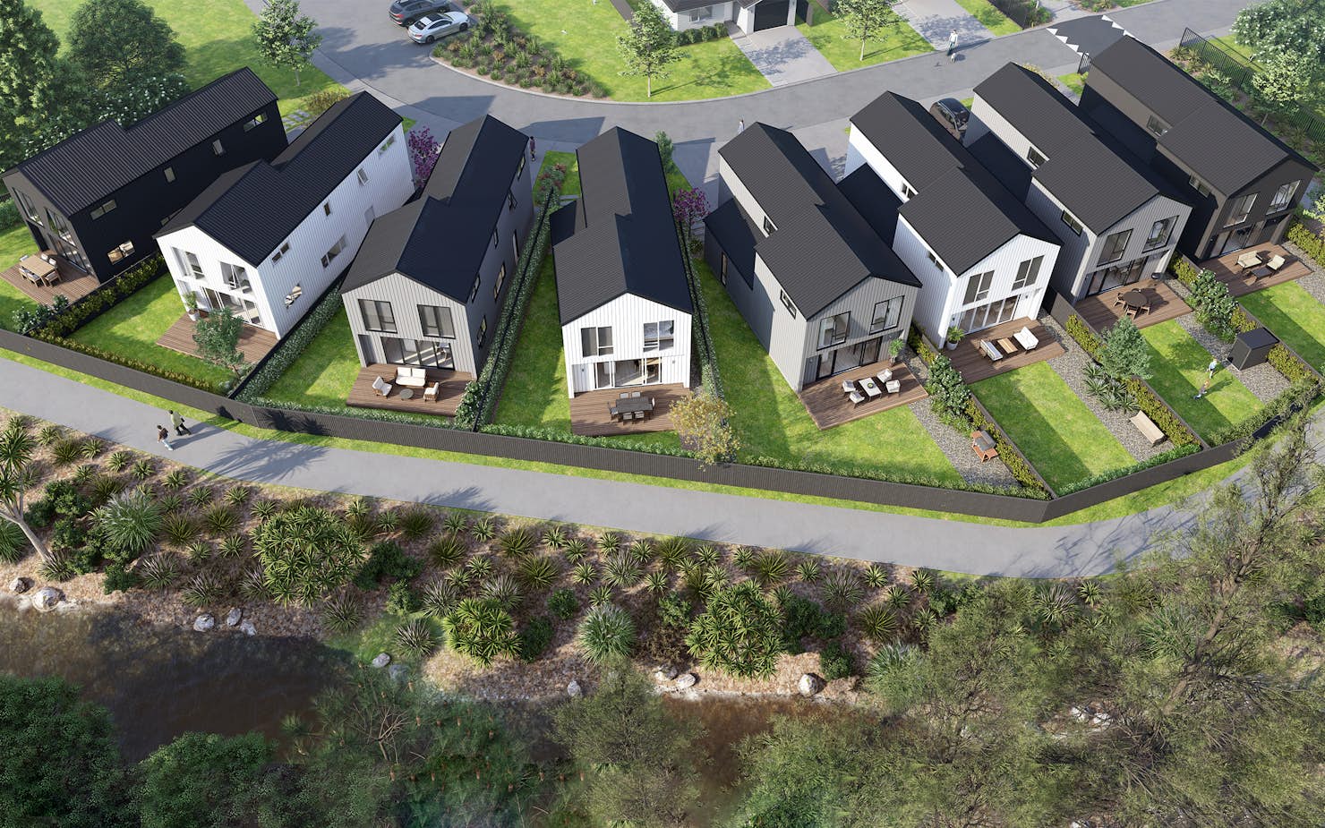 Lot 5 enjoys walkway access at the North East of the development. The home comprises of three double bedrooms plus a study on the upper floor with a well-appointed bathroom and separate toilet. You'll find an open-plan living area on the lower level that seamlessly extends to a deck and low maintenance garden with exceptional views and access to the laneway that runs along the tree-lined stream into the town centre. Additionally, the home includes a single garage with direct access to the interior.