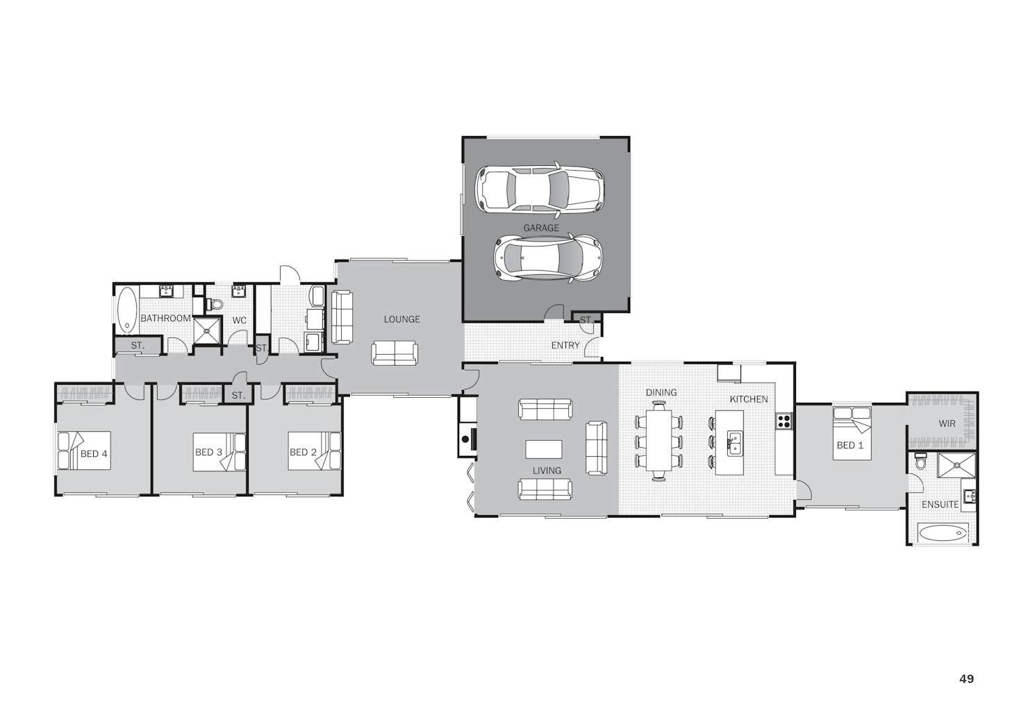 A sprawling oasis of a home, the Monterey offers space for everyone. The layout allows for most rooms to open up to the outdoor living space, ensuring an abundance of light and fresh air. A centrally-located media room provides a peaceful retreat between the social spaces and private master suite and the remaining three double bedrooms. The open-plan kitchen/ dining space is great for family dinners, homework time as well as entertaining.