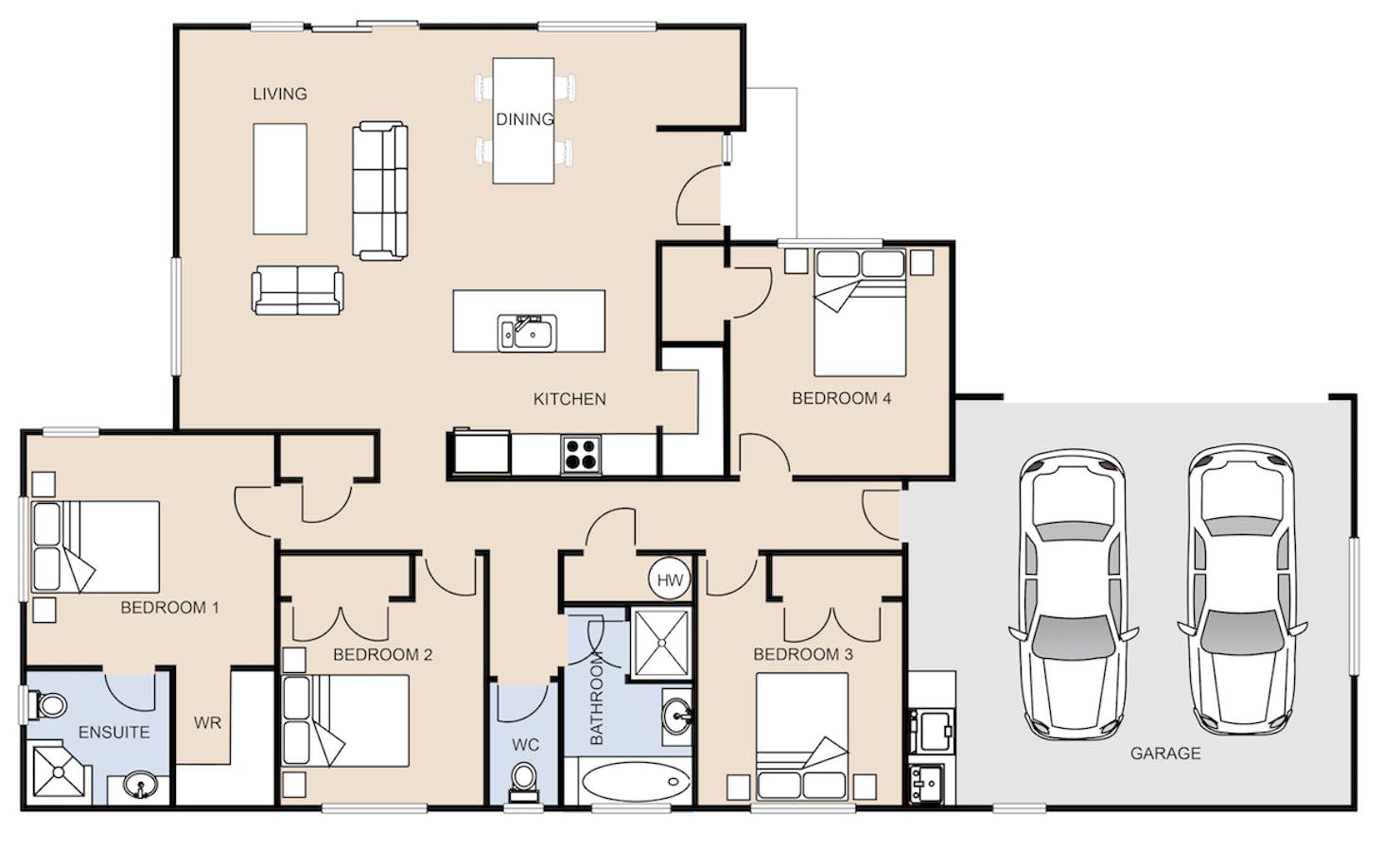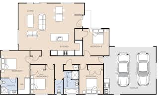 Our Pokeno showhome perfectly showcases how you can customise our low-maintenance value house plans. There's a lot on offer with our cleverly designed four-bedroom, two bathroom build. Ample windows throughout the home help ensure the natural light filters through every room at every possible point.
